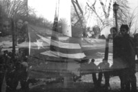 Flag Raising Ceremony during Malcolm X Day and Memorial at Brooklyn College This photo, taken by pioneering student-activist Antonio "Tony" Nieves, member and liaison of the Brooklyn League of Afro-American Collegians (B.L.A.C.) and the Puerto Rican Alliance (P.R.A.) at Brooklyn College, shows members of both P.R.A. and B.L.A.C. at the flag raising ceremony during the Malcolm X Day and memorial event at BC in 1969. The Puerto Rican and Black Liberation flags were raised and flown on the flagpole located at the middle of the Brooklyn College campus in front of the Library and the President's office on the East Quad of the campus. Event organizers and attendees can be seen at the ceremony. This photo was accidentally overexposed by Nieves. This item is part of the Puerto Rican Studies at Brooklyn College (PRSBC) Collection, which covers the largely Puerto Rican-led student movement at Brooklyn College (CUNY) during the late 1960s and early 1970s that fought for the creation of the Puerto Rican Studies Department at the college. The collection includes oral history interviews with pioneering student activists, photographs of participants and their struggles, and other archival materials on the fight to create the Puerto Rican Studies Department drawn from the Archives and Special Collections library at Brooklyn College. -