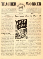Teacher and Worker, April 1936 Articles on this front page of the April 1936 issue of City College's Teacher and Worker discuss a planned student "peace assembly" as well as preparations for faculty participation in the upcoming May Day Parade. This monthly campus publication was produced by the "Communist Party Unit of the City College."Teacher and Worker commenced publication in March 1935 and throughout its run contained anonymously written articles that discussed various campus issues as well as larger national and international concerns. The publication is just one example of rising faculty activism at CCNY during the period. Participation in the campus Communist Party as well as the Anti-fascist Association all stemmed from a desire to combat fascism and other societal injustices. -