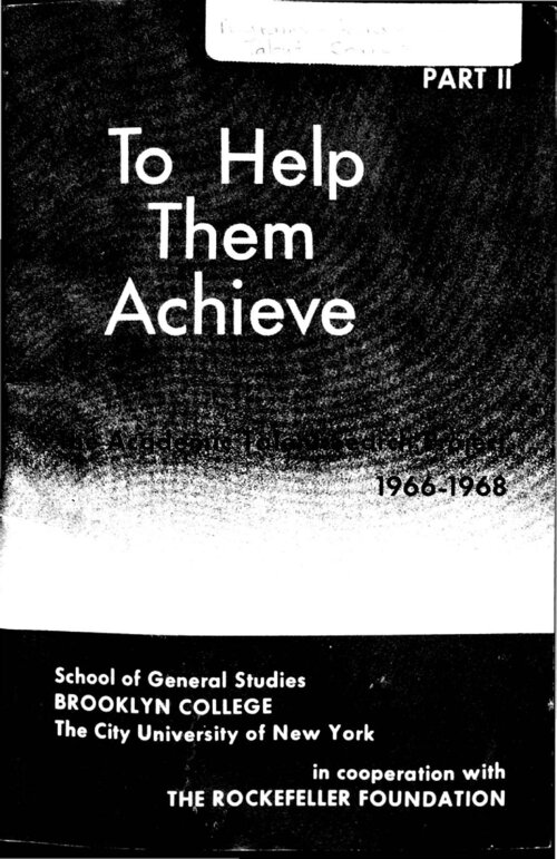 To Help Them Achieve: The Academic Talent Search Project 1966-68, Part II In the Fall of 1964, (armed with a Rockefeller Foundation grant) Brooklyn College’s School of General Studies launched a 42 student pilot program using Bowker’s model, which it called the “Academic Talent Search Project” or “ATSP.” The ATSP students were recent graduates from Brooklyn academic high schools in poverty areas. They had academic diplomas, but low high school grade point averages (pp. 3, 7). They were provisionally admitted until they could demonstrate academic success. ATSP “was designed to explore whether students with apparent college potential, but without the required academic standards for admission, could succeed in college despite financial and cultural deprivation in terms of middle-class values” (p. 7). No new students were added in later semesters; ATSP instead tracked these 42 students for four years. Brooklyn’s modest program demonstrated the complex barriers to racial integration within a conservative, white, four-year college. By 1968, ATSP’s closing report was forced to state “unequivocally that many people at the College believe the Project to have been a failure” (p. 27). After two years, 27 of the 42 ATSP students (64%) returned for a fifth semester. But their GPAs were low, averaging only 1.8 (about a C-) in their first year when they studied in small segregated tutorial groups and 1.2 (just over a D) in their second year when they entered mainstream classes. Also after two years, only one ATSP student had been fully matriculated as a regular student (pp. 14, 18). Eleven more students dropped out in the next two years, leaving only 16 of 42 (38%) in college after eight semesters. By 1968, only four ATSP students had been fully matriculated. Others persisted, but with low grade point averages. By fall of 1968, only one ATSP student had graduated and counselors believed that six more would likely eventually graduate, a potential success rate of 7 out of 42 (16.6%) (pp. 21-22). In June of 1966, ATSP was not mentioned in CUNY’s revised Master Plan (Board, 1966, June, p. 29). (This copy excludes postscript, appendices and and footnotes.) -