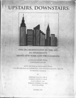 "Upstairs, Downstairs: Perchloroethylene in the Air in Apartments above New York City Dry Cleaners" This is an extract from an October 1995 report detailing the prevalence of perchloroethylene (or "perc") in the air in New York City apartments situated above dry cleaners. Perc, a potentially toxic chemical, had been the main solvent used for dry cleaning. Though written by the Consumers Union, Hunter College's Center for Environmental and Occupational Health (COEH) provided the technical assistance for the report which included measuring the data analyzed in the paper. Officially founded in 1990, the COEH spent decades dedicating itself to promoting community and workplace health throughout the New York area. It offered courses on topics ranging from asthma to ergonomics for unions, neighborhood groups, public employees, and others. -