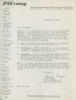 Letter: Economic Disparity In this letter addressed to President Irwin Polishook of the Professional Staff Congress (PSC), Jonathan Lang, Chair of the Doctoral Students’ Council (DSC), outlined the differences in salaries between adjunct and full-time faculty and expressed disappointment in the union’s unwillingness to confront this exploitation and inequity. The letter also stressed that the Reagan administration’s drastic cuts to graduate student financial aid made it imperative to address these inequities. The Doctoral Students’ Council, a student organization at the CUNY Graduate Center that actively addressed Adjunct issues, would later launch the Adjunct Project. -