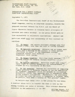 Part-Time Instructional Staff: A Resolution for a Decent Contract This September 7th, 1973 resolution was written by William Leicht, the VP of the Committee for Part-Time Instructional Staff of the PSC. It stated that a contract that "fails to benefit the weak as well as the strong, violates the basic principles of unionism." The reasons listed included a lack of salary increases, a failure to reduce the workload, and no fringe benefits. The resolution also noted that tuition exemption and job security weren't included in the contract. The Committee for Part-time Instructional Staff was a standing committee of the PSC Delegate Assembly. It was responsible for the consideration of problems facing part-time instructional staff and made recommendations related to the part-time instructional staff.