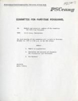 Part-Time Faculty Members of the PSC This September 29th, 1975 memo , written by David Allen of the Committee for Part-time Instructional Staff, announced a delay in the proposed strike and claimed that the decision to defer it made it unlikely that those who had been fired would be rehired. Allen provided additional information including the temporary formation of an institution of “associate membership” for those who had been laid off, the union’s intention to file a class grievance for all adjuncts, and the minimum requirements necessary to receive food stamps. The Committee for Part-time Instructional Staff was a standing committee of the Delegate Assembly. It was responsible for the consideration of problems facing part-time Instructional staff and made recommendations related to the part-time instructional staff. -