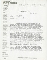 PSC Newsletter to Part-timers This June 28, 1976 memo from Susan Prager, chairperson of the Committee for Part-Time Personnel, was addressed to part-time members of the Professional Staff Congress (PSC). It included the renewed retrenchment guidelines for adjuncts and stated that violations of these guidelines were grievable. -
