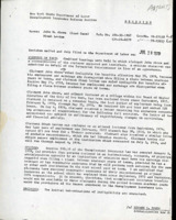 NYS Dept. of Labor Unemployment Ruling: Ineligibility to Receive Unemployment Insurance This decision, dated July 19, 1979, from the office of the New York State Department of Labor Unemployment Insurance upheld an initial determination of claimants John Abreu's and Dinah Levine’s ineligibility to receive unemployment insurance as a result of a letter of reappointment that they had received and signed. The letter of reappointment was deemed "reasonable assurance" that the two adjuncts would perform such services for the same or another institution in the next school year. -