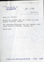 To "The New York Teacher" These 1974 letters concerned adjunct faculty job security and what constituted reasons for adjunct dismissasl. Included in this item was a request for PSC President Belle Zeller to respond to an editorial from PSC Deputy Vice President Israel Kugler, Kugler’s editorial and Zeller's response. Kugler stated it was an error to list "financial inability" and cited the precedent in Arbitrator Wildebush’s decision to pay and reinstate 15 lecturers from Brooklyn College who were fired due to a “change in personnel practices.” Zeller’s response concurred, and emphasized that appointments were subject to only two (not three) reasons: "insufficient enrollment or changes to the curriculum." -