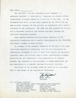 Letter to Legislative Conference Members This letter from 1971, signed by Belle Zeller, the chair of the Legislative Conference (LC), was addressed to LC members. It requested that members identify part-time faculty represented by the United Federation of College Teachers (UFCT) who would be "interested in the preservation of academic freedom, the extension of the principle of shared governance and the negotiation of a rightful package of economic benefits." This request was in response to opposition to the LC by the UFCT. During the 1960s, the United Federation of College Teachers (UFCT), and the Legislative Conference (LC) were the two main organizations that advocated for the concerns of CUNY faculty. The UFCT represented part-time faculty and lecturers while the LC was the union of tenured professors. The groups merged in 1972 to form the Professional Staff Congress, which represents CUNY faculty today. -