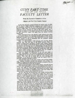 Letter from the "Adjunct and Part-time Faculty Caucus" Posted on the walls of John Jay College in 1973, this letter from the Executive Committee of the "Adjunct and Part-time Faculty Caucus" called for broader support from the CUNY community for the dignity and rights of adjunct faculty. In addition to highlighting pay and fringe benefit disparities, it discussed the fact that adjuncts had been pressing the union to work more vigorously for their interests, which included pro-rata pay, health coverage, and increased job security. The "Adjunct and Part-time Faculty Caucus" was a group formed in 1973. Chaired by David Allen, the group published and circulated challenges to the contract the PSC had negotiated, which it alleged had failed to advocate sufficiently for the rights of adjunct faculty. -