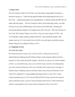 This is a draft of the curriculum proposal for the Hunter Asian American Studies Program (AASP) from 1994. The proposal emphasizes the AASP's role in the Hunter community, the New York City Asian American community, and within Asian American studies as a discipline. The program began with one full-time tenured faculty member (the director) and four adjunct courses per year, lacking enough faculty lines to offer a major or a minor. The proposal includes a listing and sample syllabi of the program's courses, which range from Gender in Asian American Literature to Asian American History of Labor and Politics. The Hunter College Asian American Studies Program (AASP) was established in 1993. As the only academic program in Asian American studies in the CUNY system, the AASP offers a minor in Asian American Studies and other resources and programming. The AASP supports scholars, artists, and activists advancing scholarship in the fields of Asian American studies and critical ethnic studies and serves as a resource for New York City's Asian American communities. In 2006, the program was at risk of being cut due to a lack of funding. Students formed the Coalition for the Revitalization of Asian American Studies at Hunter (CRAASH) and saved the program within a year. CRAASH is now a student-run club that continues to advocate for the AASP.