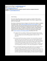 What to Do If You Are Asked to Report to Work on Campus Tomorrow Sent on March 18, 2020, this artifact included a statement by the Professional Staff Congress (PSC) dictating terms for essential workers whose roles required continued in-person work during the official closure of CUNY. Despite its name, distance learning still required many CUNY employees to remain onsite for essential operations. Seeing the possibility for abuse during the pandemic, the PSC released this statement on the final day of CUNY's instructional recess period in support of labor equity during this moment of crisis. This item is part of the City University of New York (CUNY) Distance Learning Archive, a group project developed as part of Matthew K. Golds Spring 2020 Knowledge Infrastructures seminar in the Ph.D. Program in English at The Graduate Center, CUNY, in partnership with The Interactive Technology and Pedagogy Certificate Program. The project's goal was to resist or trouble the discourse of catastrophe around the shift to online learning caused by the COVID-19 pandemic by documenting the lived experiences of students, faculty, and staff across CUNY's 25 campuses. Further, we wanted to document the moment of crisis response with a critical approach to educational technology. -