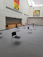 Safety Measures at The Graduate Center Taken by Charles Scott, Director of Facilities at the CUNY Graduate Center between March 2020 and May 2021, these pictures showed some of the ways in which administration and staff worked towards creating the conditions for a safe working and learning environment, as per CDC and NY State guidelines. While only a few essential workers were allowed in/required to enter the building after Governor Cuomo's March 13 executive order, over the following months, Scott and his staff explored a mired of ways in which the Graduate Center (a building where the majority of classrooms and offices have no windows nor access to natural light and air) could be safe for students, staff, and faculty. This item is part of the City University of New York (CUNY) Distance Learning Archive, a group project developed as part of Matthew K. Golds Spring 2020 Knowledge Infrastructures seminar in the Ph.D. Program in English at The Graduate Center, CUNY, in partnership with The Interactive Technology and Pedagogy Certificate Program. The project's goal was to resist or trouble the discourse of catastrophe around the shift to online learning caused by the COVID-19 pandemic by documenting the lived experiences of students, faculty, and staff across CUNY's 25 campuses. Further, we wanted to document the moment of crisis response with a critical approach to educational technology. -