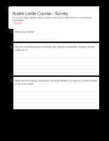 Initial Survey for Students Switching to Distance Learning The instructor in a seminar on the works of Audre Lorde distributed this copy of a survey from March 2020 during the instructional transition. Though simple in style (only seven questions/three pages in length), the form revealed what concerns motivated pedagogy during the transition. Rather than focusing primarily on technological needs and possibilities for instruction, the survey asked students about their personal experiences, dwelling on their emotional well-being and sense of satisfaction in the course. Such interactions highlight how some instructors focused distance learning around personal student outcomes. This item is part of the City University of New York (CUNY) Distance Learning Archive, a group project developed as part of Prof. Matthew K. Gold's Spring 2020 Knowledge Infrastructures seminar in the Ph.D. Program in English at The Graduate Center, CUNY, in partnership with the Interactive Technology and Pedagogy Certificate Program. The project's goal was to resist or trouble the discourse of catastrophe around the shift to online learning caused by the COVID-19 pandemic by documenting the lived experiences of students, faculty, and staff across CUNY's 25 campuses. Further, the project wanted to document the moment of crisis response by taking a critical approach to educational technology. -