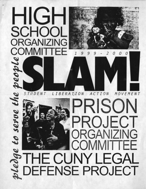 SLAM! Programs Brochure This 5-page brochure includes a brief overview of SLAM's history up to the 1999-2000 school year, SLAM!'s 10-point program, and details on three campaigns SLAM! was organizing that year: the High School Organizing Committee, which worked with high school students to demand the return of remedial classes at CUNY's senior colleges; the Prison Project, which mobilized youth to protest prison expansion and defend political prisoners; and the CUNY Legal Defense Project, which supported litigation by attorneys for CUNY students' civil liberties and rights and the defense of arrested activists. This brochure encourages people to get involved with these programs/campaigns. -