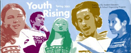Slam! High School Organizing Program: Youth Rising This publication was created by SLAM! to showcase poetry by the high school students in the SLAM! High School Organizing Program's creative writing workshop. The students learned poetry writing skills and discussed issues of police abuse, racial profiling, and violence in their communities, then wrote poems about the subject. -