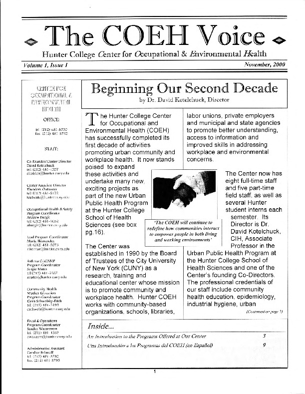 Center for Occupational and Environmental Health at Hunter College. Letter. “The COEH Voice.”, CUNY DIGITAL HISTORY ARCHIVE, accessed March 10, 2026, https://stephenz.tailc22a4b.ts.net/s/cdha/item/1173