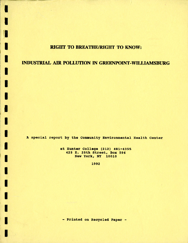 Community Environmental Health Center at Hunter College. Letter. 1991. “‘Right to Breathe Right to Know: Industrial Air Pollution in Greenpoint-Williamsburg’”, 1991, CUNY DIGITAL HISTORY ARCHIVE, accessed March 10, 2026, https://stephenz.tailc22a4b.ts.net/s/cdha/item/1199