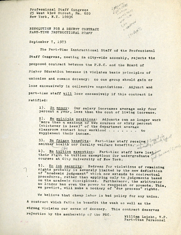 Leicht, William, VP of the Part-time Instructional Staff Committee. Letter. “Part-Time Instructional Staff: A Resolution for a Decent Contract.”, CUNY DIGITAL HISTORY ARCHIVE, accessed March 10, 2026, https://stephenz.tailc22a4b.ts.net/s/cdha/item/1380
