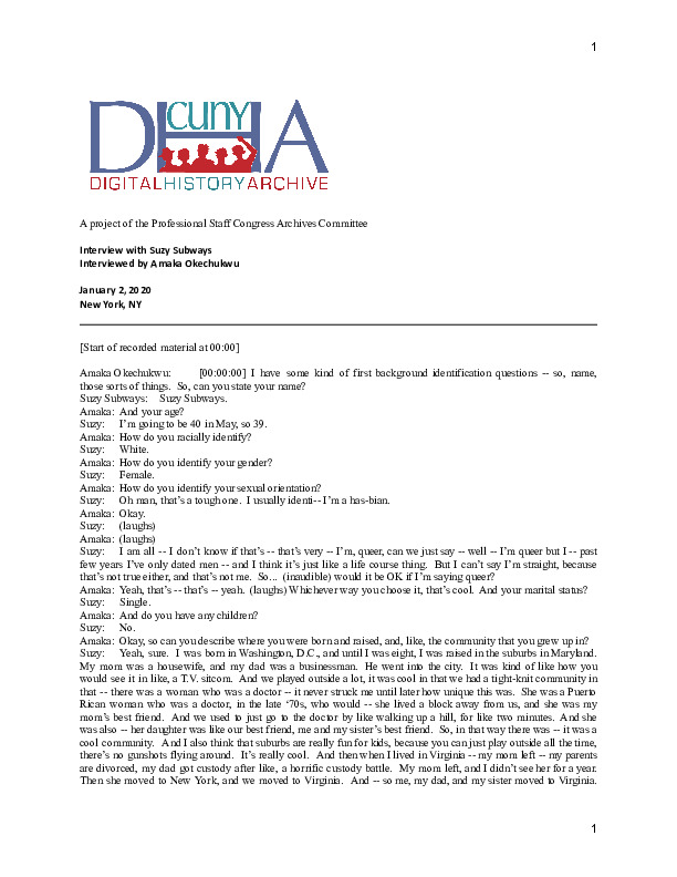 Oral History Interview with Suzy Subways