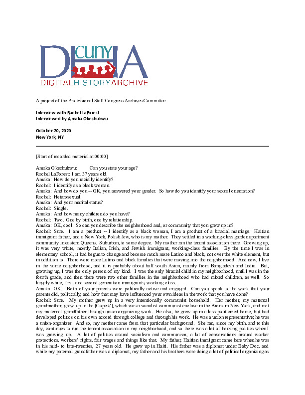 Okechukwu, Amaka. “Oral History Interview With Rachel Laforest.”, CUNY DIGITAL HISTORY ARCHIVE, accessed March 10, 2026, https://stephenz.tailc22a4b.ts.net/s/cdha/item/2006