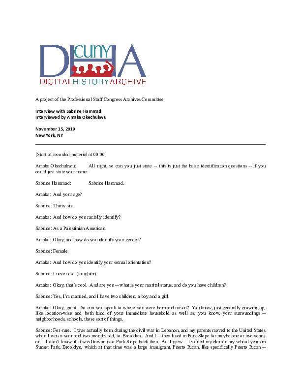 Okechukwu, Amaka. “Oral History Interview With Sabrine Hammad.”, CUNY DIGITAL HISTORY ARCHIVE, accessed March 10, 2026, https://stephenz.tailc22a4b.ts.net/s/cdha/item/2007