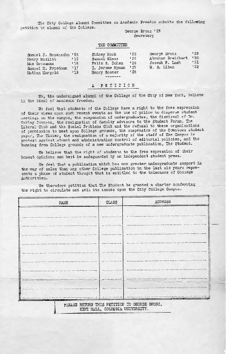 City College Alumni Committee on Academic Freedom. Letter. 1933. “Alumni Petition for Free Expression on Campus”. 4052, 1933, CUNY DIGITAL HISTORY ARCHIVE, accessed March 10, 2026, https://stephenz.tailc22a4b.ts.net/s/cdha/item/475