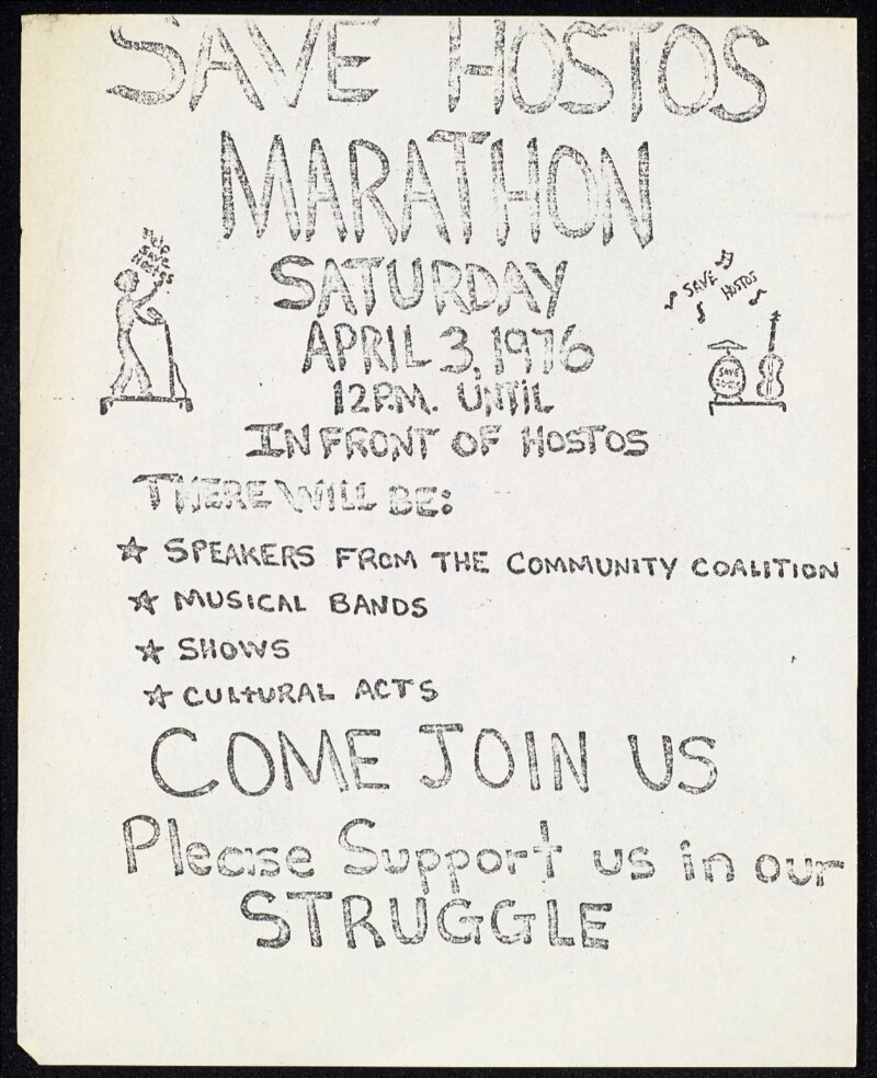 “‘Save Hostos Marathon’”. Letter, CUNY DIGITAL HISTORY ARCHIVE, accessed March 10, 2026, https://stephenz.tailc22a4b.ts.net/s/cdha/item/663