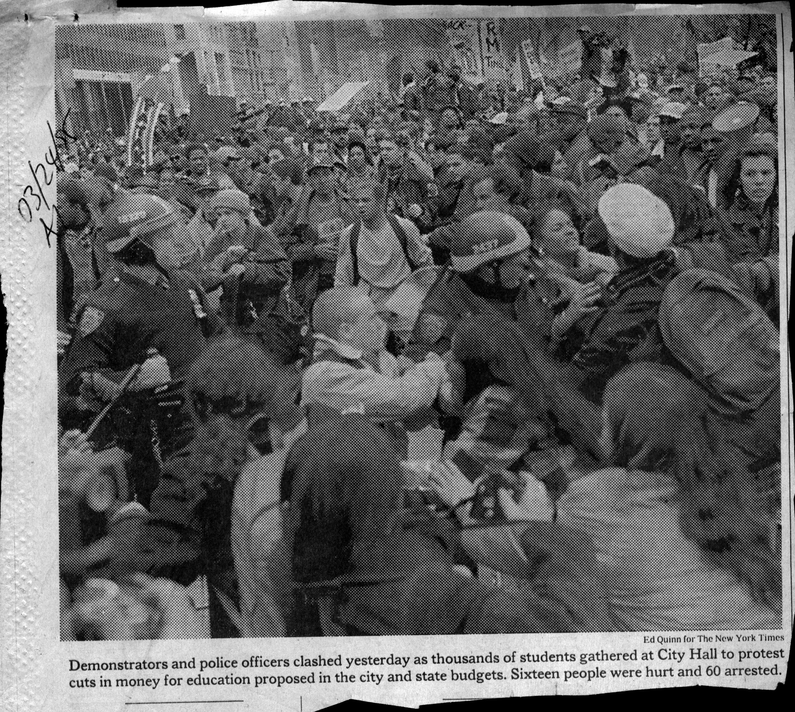 cuts in money for education proposed in the city and state budgets. Sixteen people were hurt and 60 arrested.