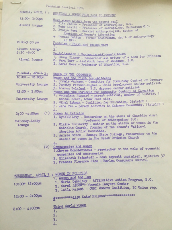 Program, Brooklyn College Feminist Festival